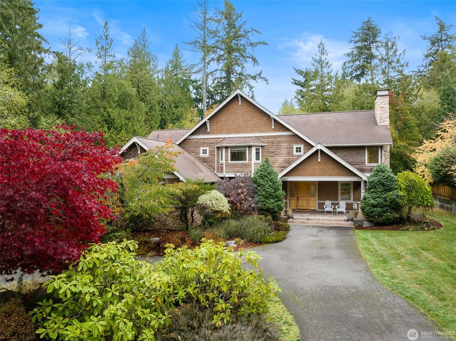 Sunny one-acre lot with peek-a-boo views of Port Madison! This classic 4 bed/2.25 bath home offers an open layout with abundant natural light. The bright kitchen features an eating space, large island and built in appliances, and flows seamlessly to a spacious deck, perfect for entertaining. Enjoy two cozy fireplaces, vaulted ceilings, formal dining room, and expansive primary suite with walk in closet, soaking tub, and steam shower. The finished basement offers flexible space for a gym, media room or storage. Complete with 2 car garage, and a large detached shop ideal for RV parking or hobbies. Peaceful, private setting-don't miss this unique opportunity!